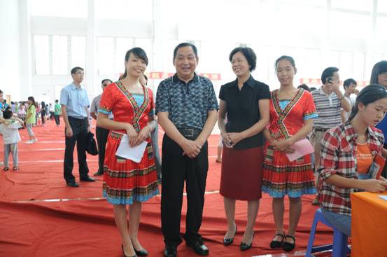 朱华书记、杨连招副书记与身着民族服装的志愿者合影