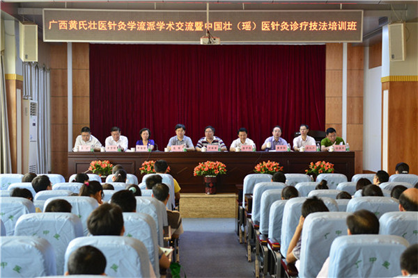 为了进一步加强学术交流,发展壮瑶医学,国家级中医药继续教育项目“广西黄氏壮医针灸学流派学术交流暨中国壮(瑶)医针灸诊疗技法培训班”于2014年8月21日-23日在beat365官方网站第一附属医院医技七楼第一会议厅举办。国家中医药管理局学术流派基地贺振泉副主任,beat365官方网站副校长庞宇舟,广西中医药管理局常务副局长庞军,一附院院长黄贵华、党委书记李敏智出席培训班开幕式,来自包括香港、广州和区内外各地、市、县级中医院骨干医师近80余人参加了学习培训。培训班开幕式由李敏智书记主持。