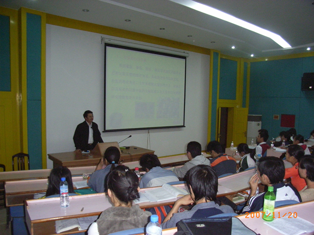 众人期待已久的由壮医药学院主办,由校党委组织部部长、壮医药学院院长、民族医学(壮医药学)学科带头人庞宇舟教授主讲的《壮医药的研究、发展与前景展望》讲座,于2007年11月20日晚在西梯一如期举行。