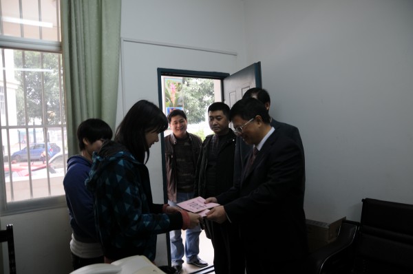 2013年1月21日上午11时,直属党委韦艾凌书记、何天富院长、覃振林副书记等一行领导来到壮医药学院慰问困难学生党员。