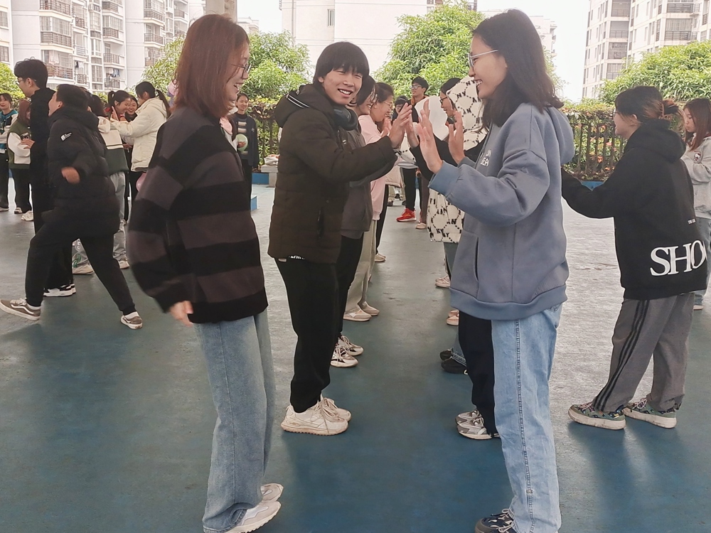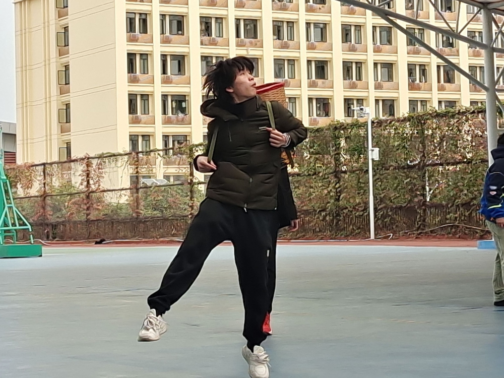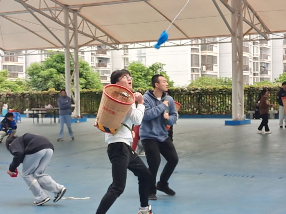 手推不倒翁游戏后,还有背篓抛绣球,袋鼠跳等项目。在背篓抛绣球比赛中,五彩斑斓的绣球如凌空的虹桥在空中飞扬,背篓里盛满同学们激昂的青春热血,同学们深厚的友谊在充满默契的一抛一接中熠熠生辉。